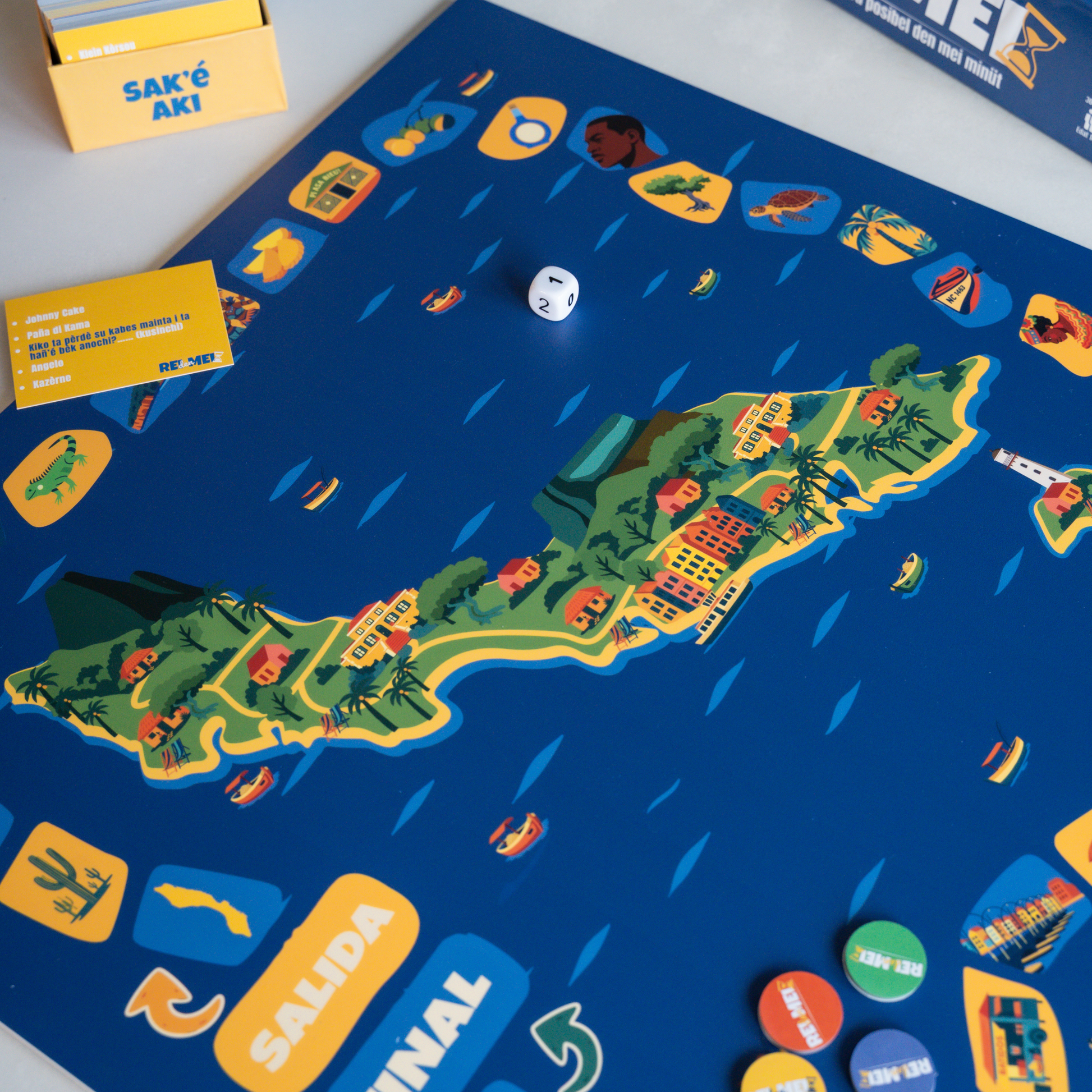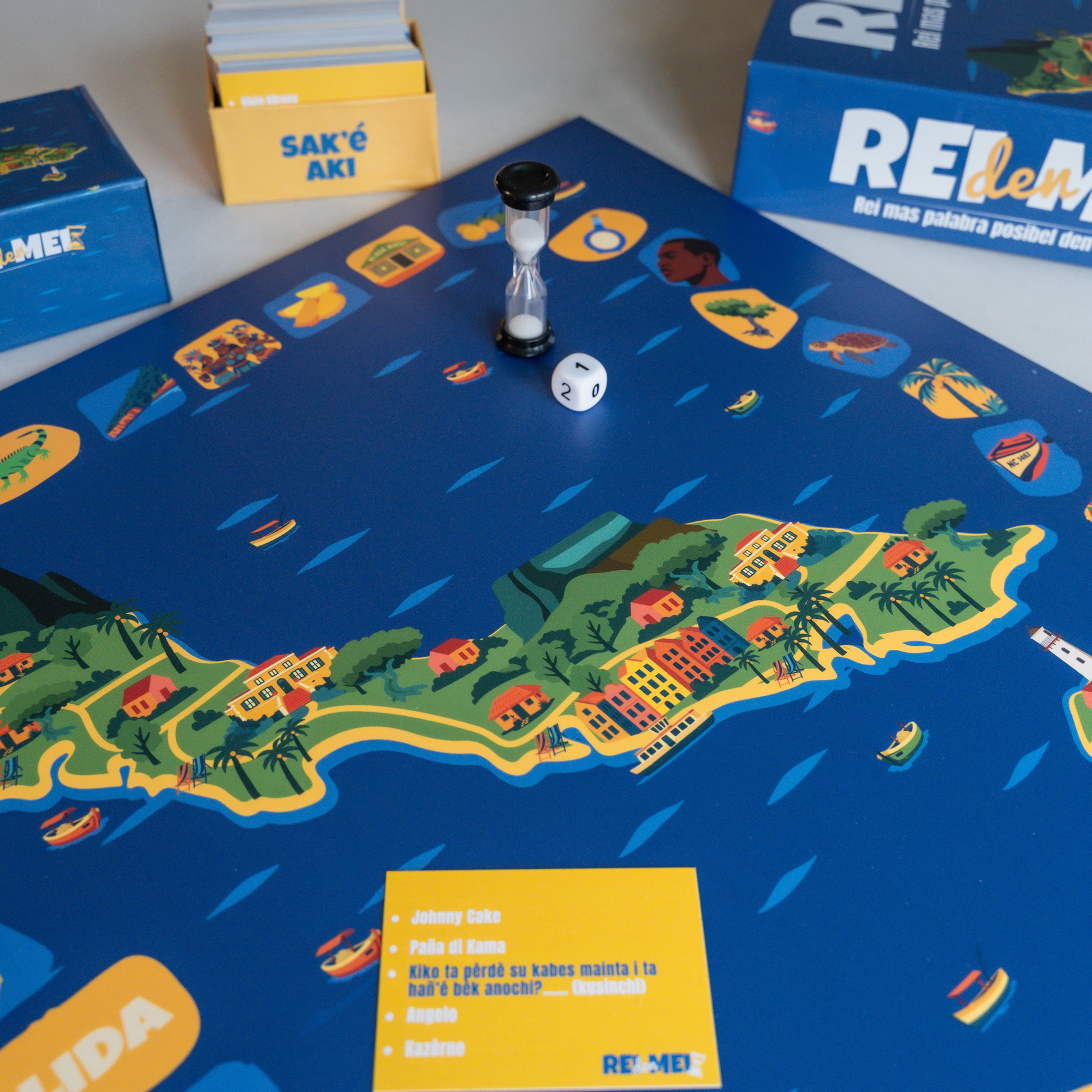 Kontenido: Un kaha ku 240 karta ku 2400 palabra, 1 bòrchi di spèl, 1 oloshi di santu, 1 dou, 4 ficho i e reglanan di spèl.